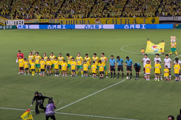 ジェフユナイテッド千葉絆会、ホーム38回目の応援観戦。暑さも和らぎ観戦しやすい気候の下、32法人・団体の会員の方にご参加いただきました。午後6時00分、13,902名の観衆の中ホーム・フクアリでの試合は始まりました。